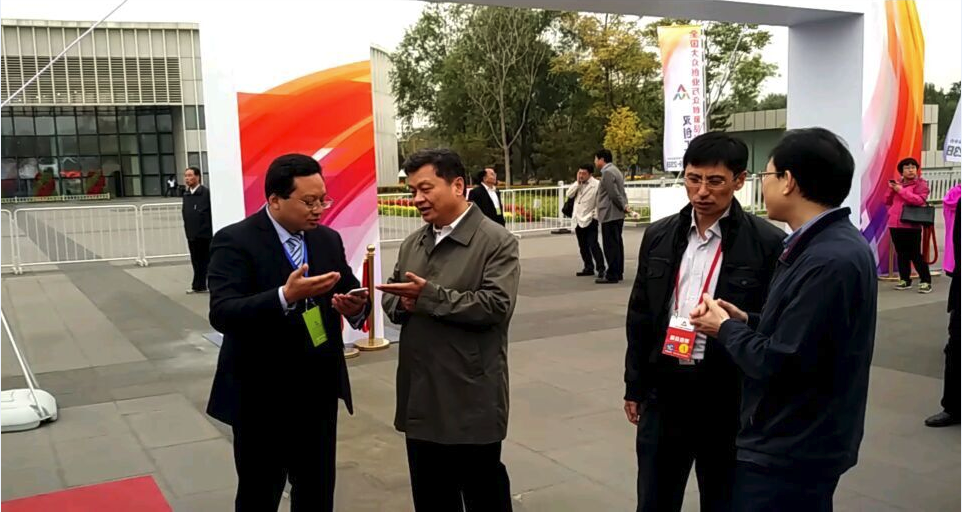 在 “双创活动周”期间,中国科协党组成员、中国科协机关党委书记王延祜以及科协其他有关部门的领导同志亲切接见了苏州信亨董事长路海英。