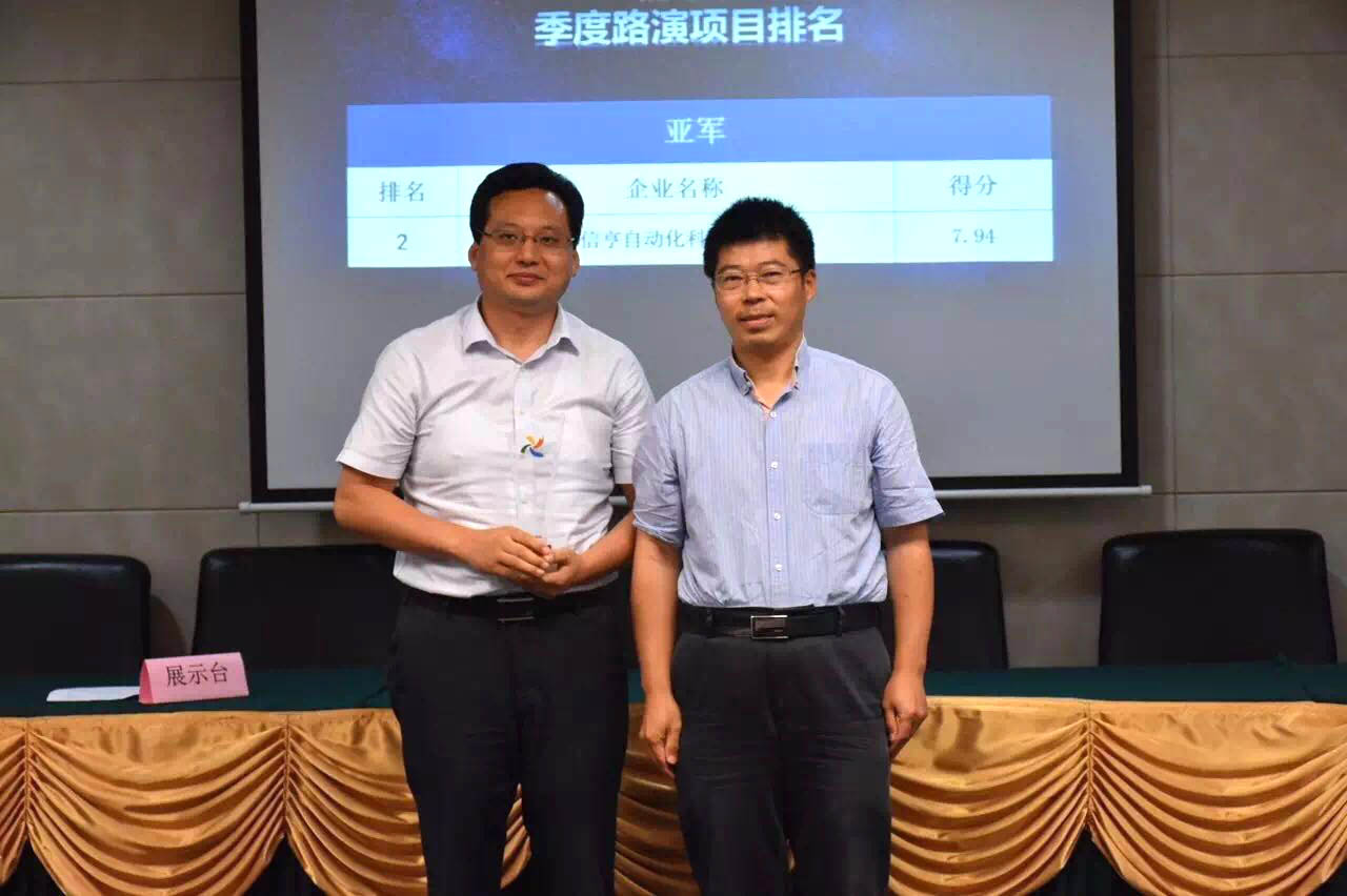 6月29日汇聚五场行业路演的十大优质项目,在“领军秀”季度路演上终极PK。100多位企业代表参加,评委结合技术和产品、商业模式及实施方案、行业及市场、团队、财务等多方面,进行专业分析给出了最后评分。苏州信亨荣获“领军秀”季度路演亚军,苏州信亨自动化科技有限公司董事长路海英(左)上台领奖。